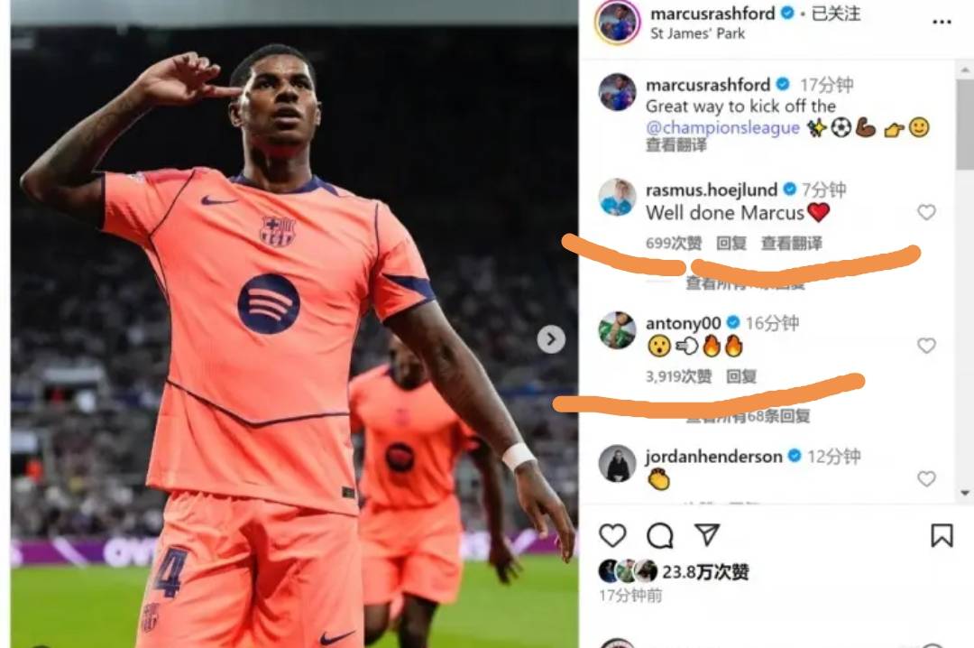 这条动态迅速引发热议,拉什福德的前曼联队友们纷纷留言互动。